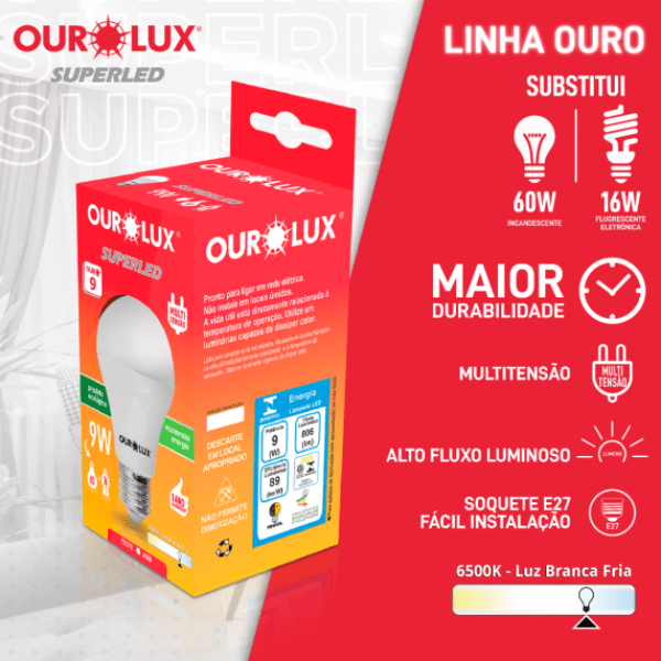 Lâmpada Superled 9W Bivolt 6500K – Ourolux